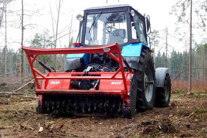 • мульчер. Это мини-трактор, очищающий территорию от молодой поросли и кустарника. Он также используется для создания противопожарных полос и прокладывания лесосеки;